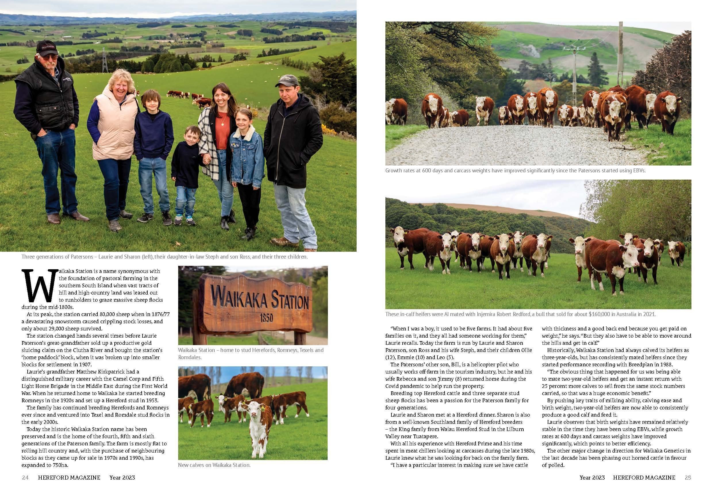 Pre and post conference tours have been arranged by the New Zealand Hereford Assocation and Mr Paterson said about four bus-loads of people will come to the family’s station for a short tour and stud viewing. “We will get some animals close to the yard and show some examples of our breeding programme.”